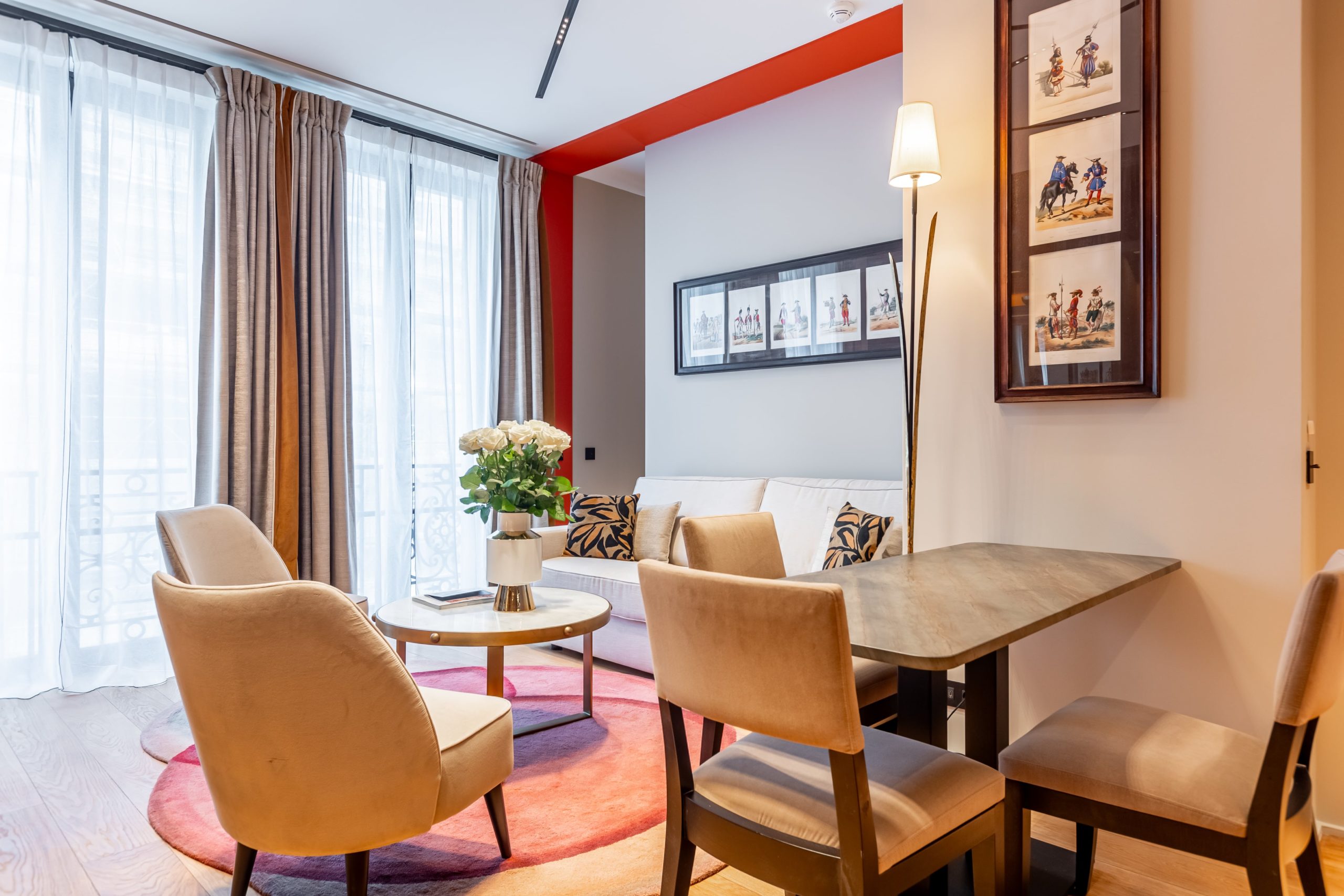 L'appartement Exécutif est idéal pour les voyageurs d'affaires ou les couples souhaitant un espace légèrement plus généreux. Ses 55 m² / 592 Sq.ft. sont organisés avec soin : un salon spacieux, une cuisine ouverte fonctionnelle, une chambre double confortable et une salle de bain bien équipée. Bénéficiez de tout le confort 5 étoiles de la Maison Boissière dans un cadre sobre et élégant.