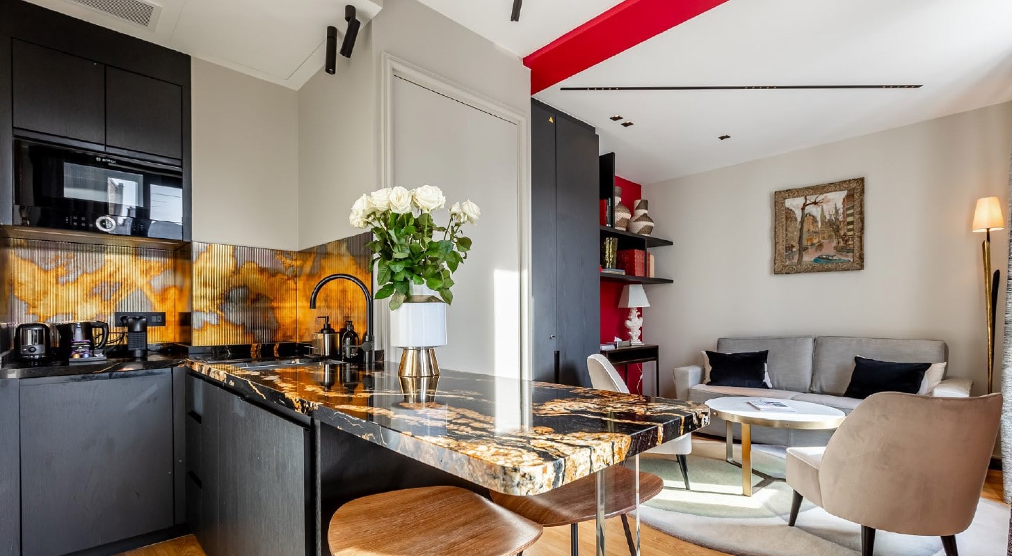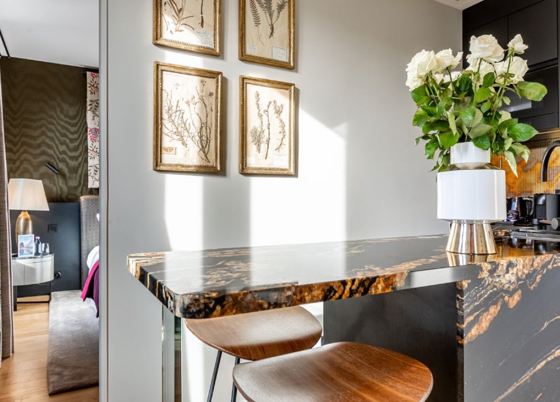 L'appartement Supérieur offre un cadre élégant et intime, parfait pour un séjour en couple ou en solo à Paris. Ses 40 m² / 430 Sq.ft. bénéficient d'une belle luminosité grâce à l'exposition sud-est. La décoration soignée, la literie haut de gamme et les équipements modernes en font un havre de paix au cœur du 16e arrondissement.
